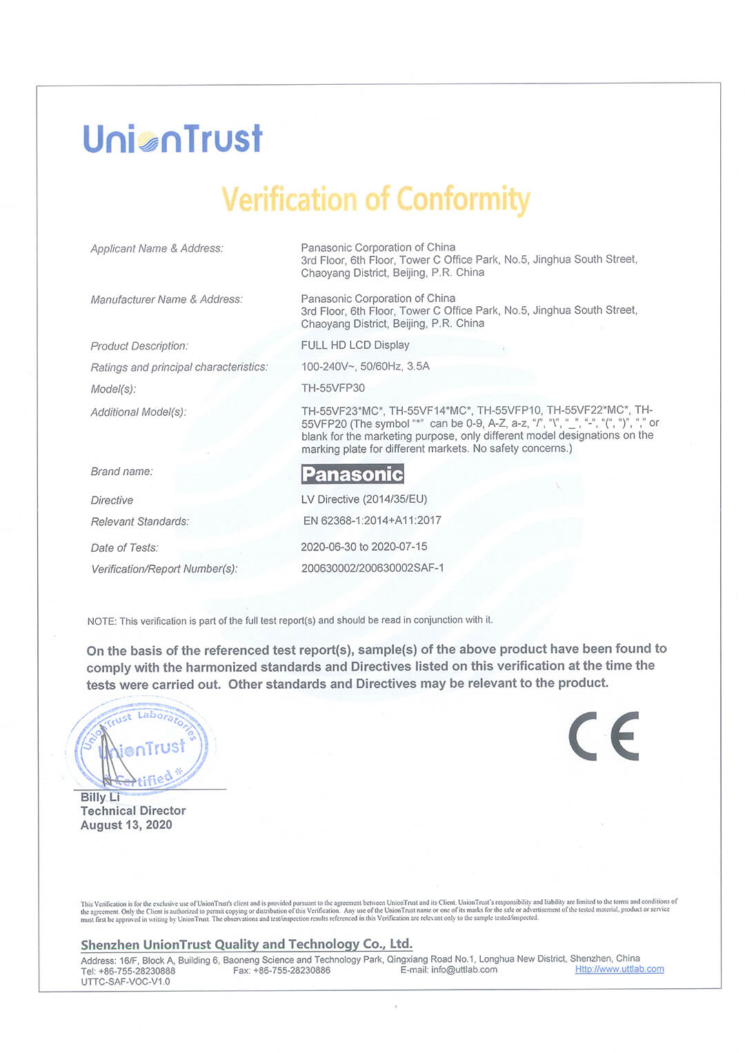 VW-CE-LVD-證書