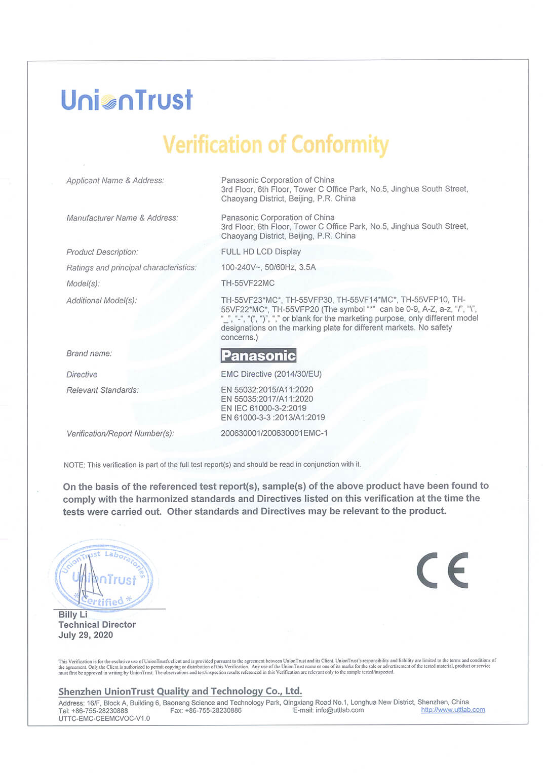 VW-CE-EMC證書